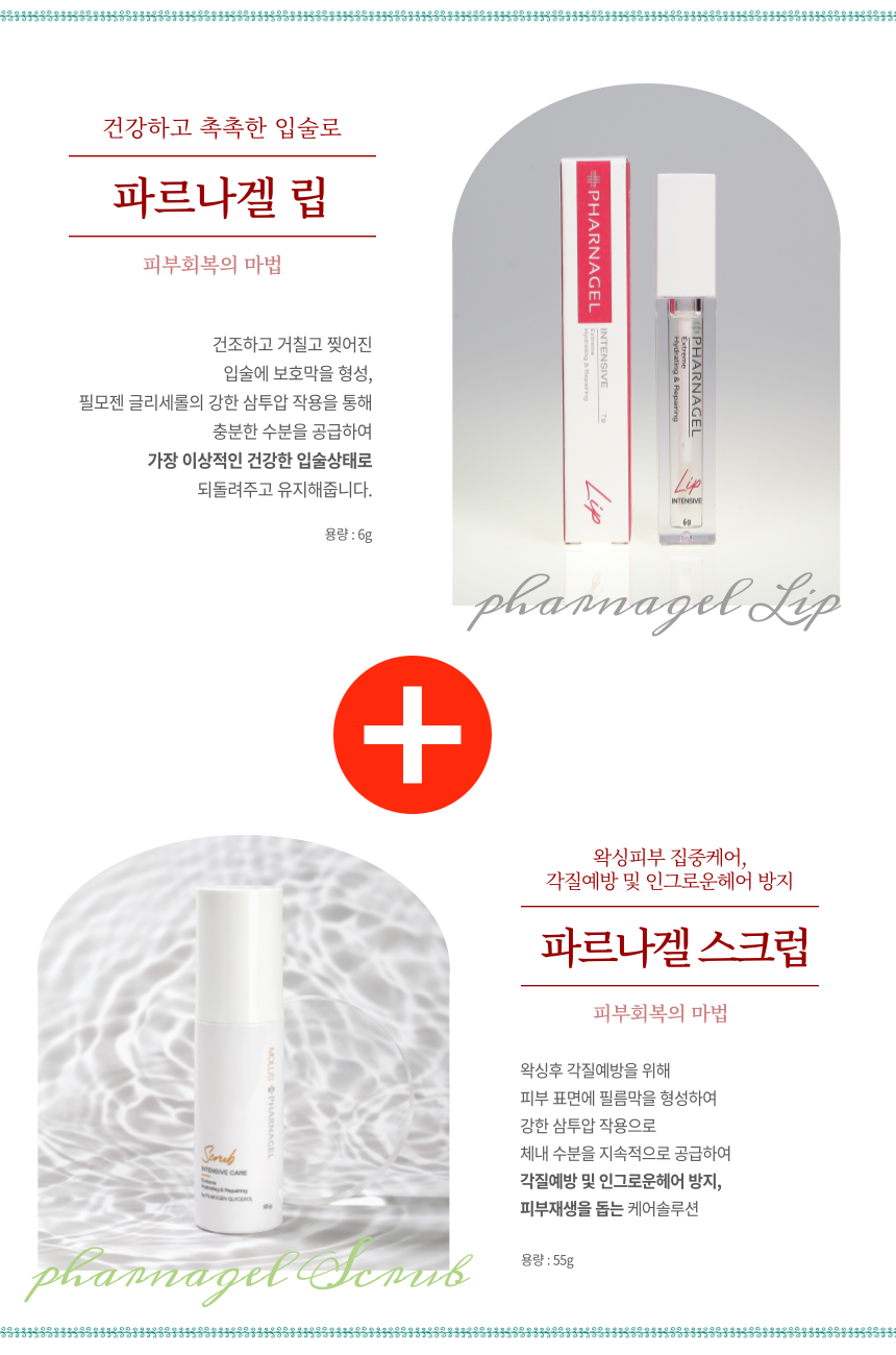 파르나겔 립 6g제품과 스크럽 55g 제품의 세트 할인상품입니다.(*각 제품의 상세한 정보는 단품 상세페이지를 참고해 주세요.)